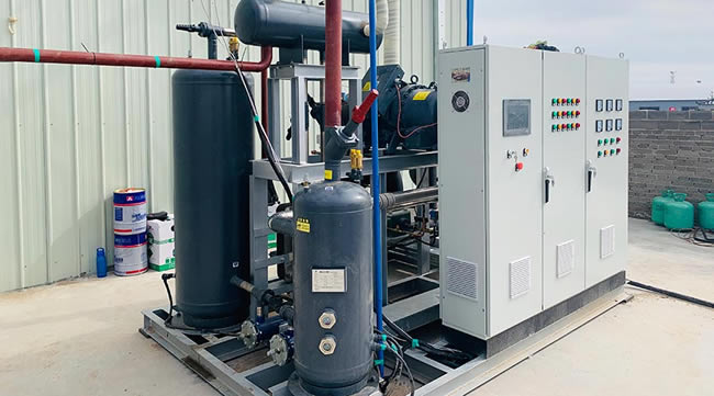 由于使用潤滑油使機器的冷卻使用和密封性能得到改善,排氣溫度降低,即使蒸發(fā)溫度較低(-40℃)和壓縮比較高(25左右),仍然可以單運行,即在定范圍內(nèi)可以代替兩壓縮循環(huán)。